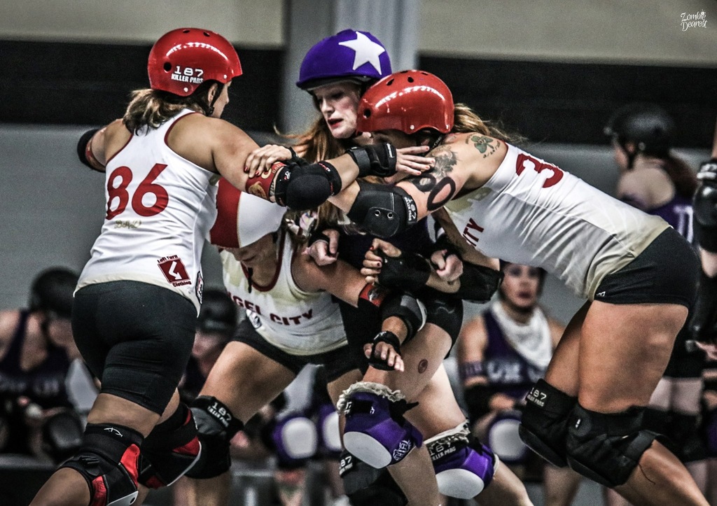 Being a Travel Team skater is a huge commitment in and of itself. The time, energy, physicality, and financial obligations made my life exceptionally more complicated, rewarding, and, oftentimes, ridiculous. As a breastfeeding mom, I was in a committed relationship with my breast pump. Waking up every few hours throughout the night to keep the supply up, pumping while gearing up for games, breasts out in pregame huddles and again at halftime, storing my milk in our ice pack freezer at the warehouse… I don’t miss those days, but at the same time, I do. It was, however, difficult. I found myself in the minority—often working twice as hard to achieve marginally less in a system that’s not conducive to people who have lives that make derby difficult. I was among the privileged (and still am in most ways), often not understanding of skaters who couldn’t travel to tournaments, or were too tired to make it to practice, or had real boundaries to playing to their potential. I think our league, and the derby community as a whole, has work to do to make our sport more accessible to skaters who are forgotten when they in fact have so much to offer in high-level play.